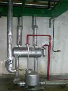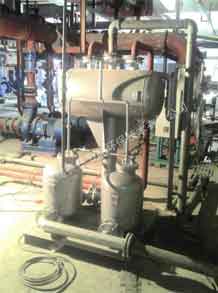 通常冷凝水可以通過疏水閥很方便地排出設(shè)備,進(jìn)入冷凝水排放系統(tǒng),如果冷凝水已經(jīng)被污染,則應(yīng)該直接排放掉;如果沒有污染,可以將其回收到鍋爐給水箱以利用冷凝水含有的熱量,這樣同時(shí)也節(jié)省了水和水處理的費(fèi)用。有時(shí)用汽設(shè)備內(nèi)部會(huì)產(chǎn)生真空,這樣會(huì)影響冷凝水的排出,從而影響蒸汽換熱效率,這時(shí)冷凝水就需要用泵壓出去。